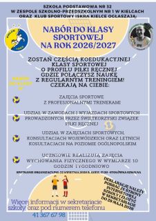 Zachęcamy do zapoznania się z informacjami dotyczącymi naboru do klasy IV sportowej w nowym roku szkolnym 2026/2027.