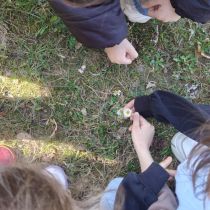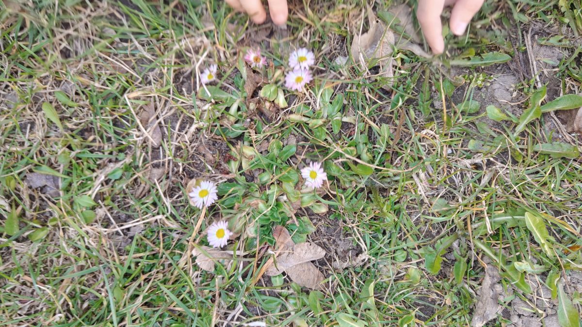 Podczas dalszego spaceru uczniowie zauważyli także pierwsze kwiaty rosnące przy ścieżkach i na trawnikach🌷. Szczególną radość wzbudziły stokrotki, których białe płatki i żółte środki wyraźnie kontrastowały z jeszcze chłodną, marcową zielenią. Wśród trawy można było dostrzec również inne drobne kwiatki, które odważnie zakwitły mimo zmiennej pogody.