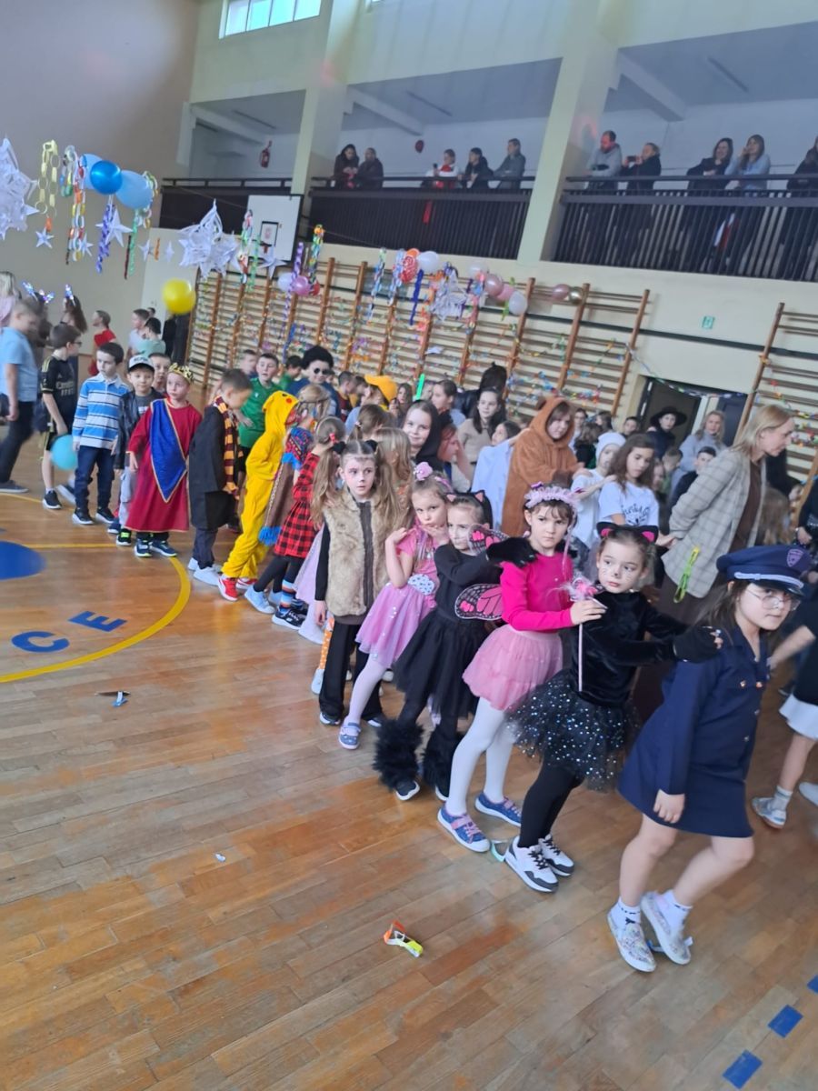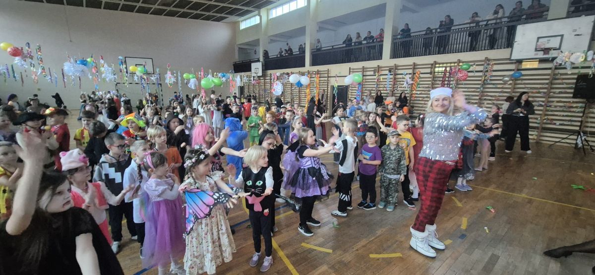 6 lutego w naszej szkole odbył się bal karnawałowy dla uczniów klas 1–4. Było to wyjątkowe wydarzenie, na które dzieci czekały z dużą niecierpliwością. Wspaniałą atmosferę zapewniła muzyka grana na żywo przez zespół Gratis, która porwała wszystkich do wspólnej zabawy.