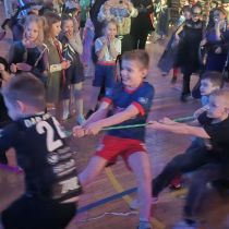 Podczas balu nie zabrakło emocjonujących konkurencji i zabaw ruchowych, takich jak przeciąganie liny, zabawy z chustą animacyjną oraz taniec z balonem. Wszystkie atrakcje dostarczyły dzieciom wiele radości, śmiechu i pozytywnych emocji.