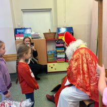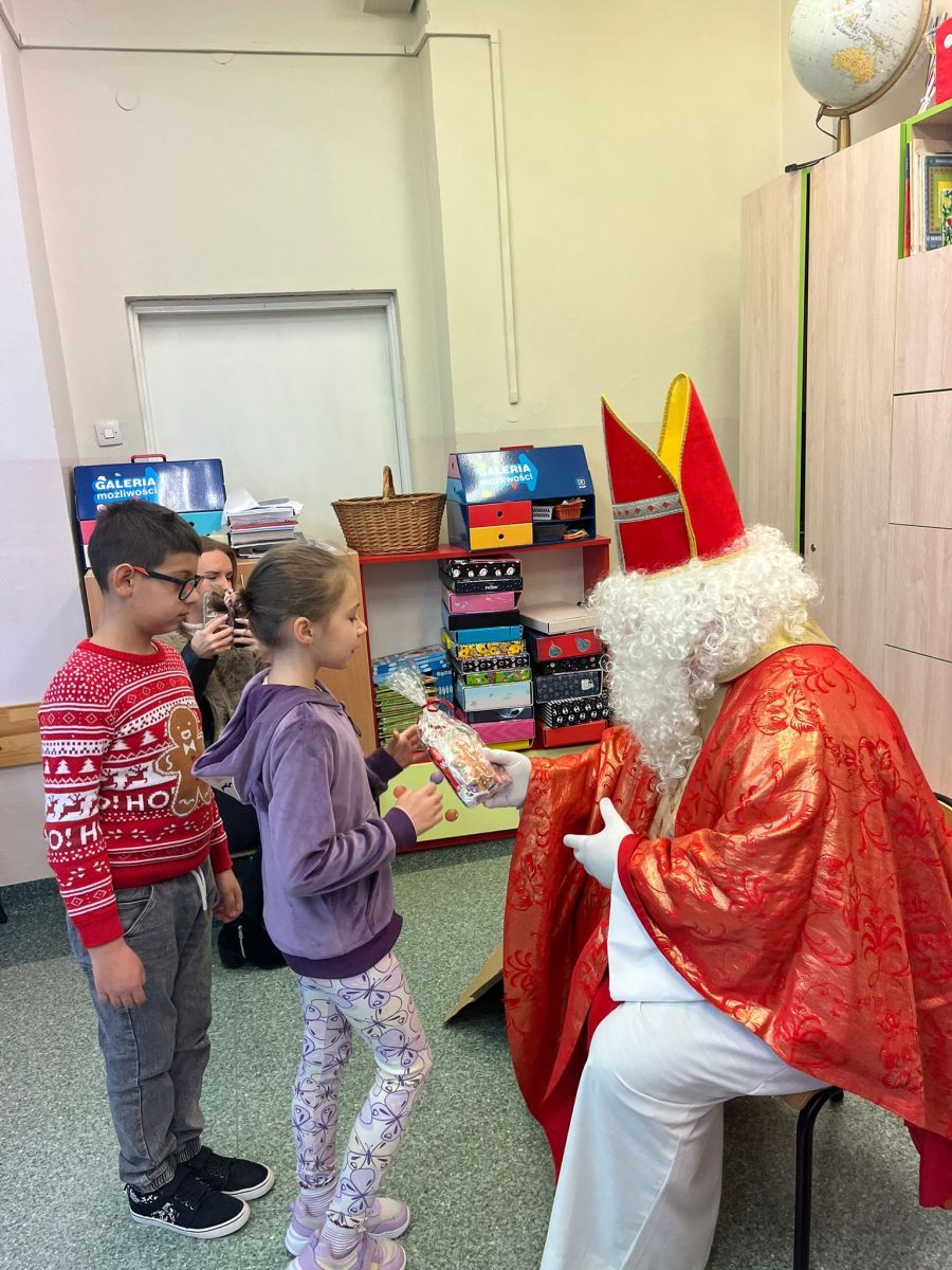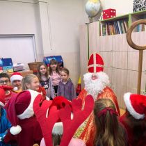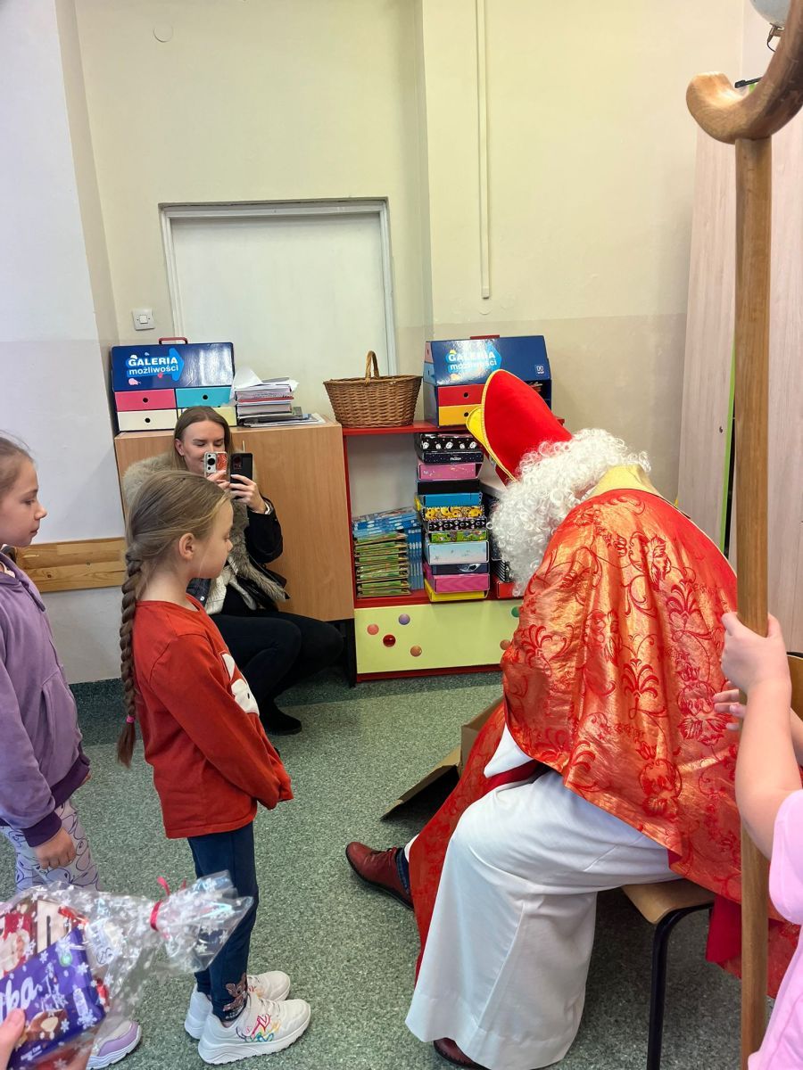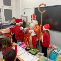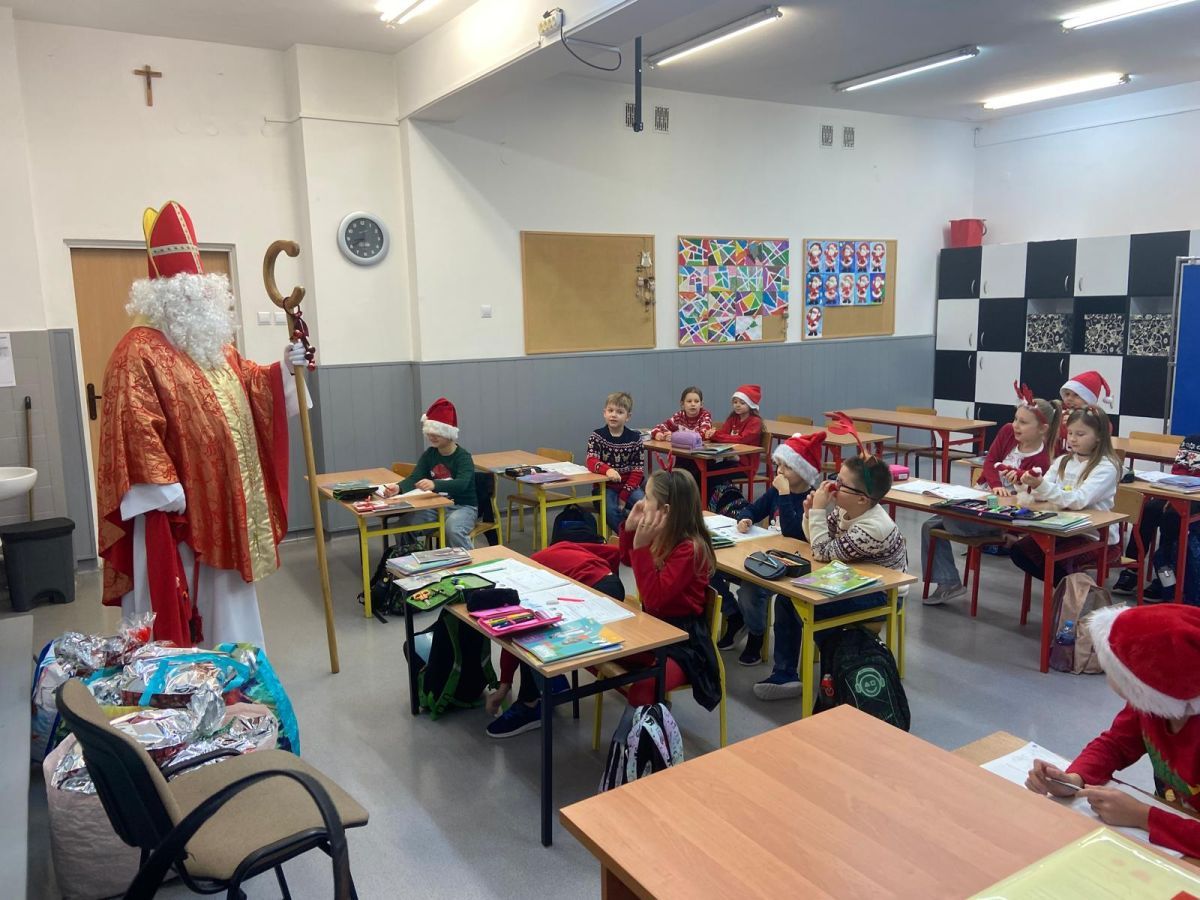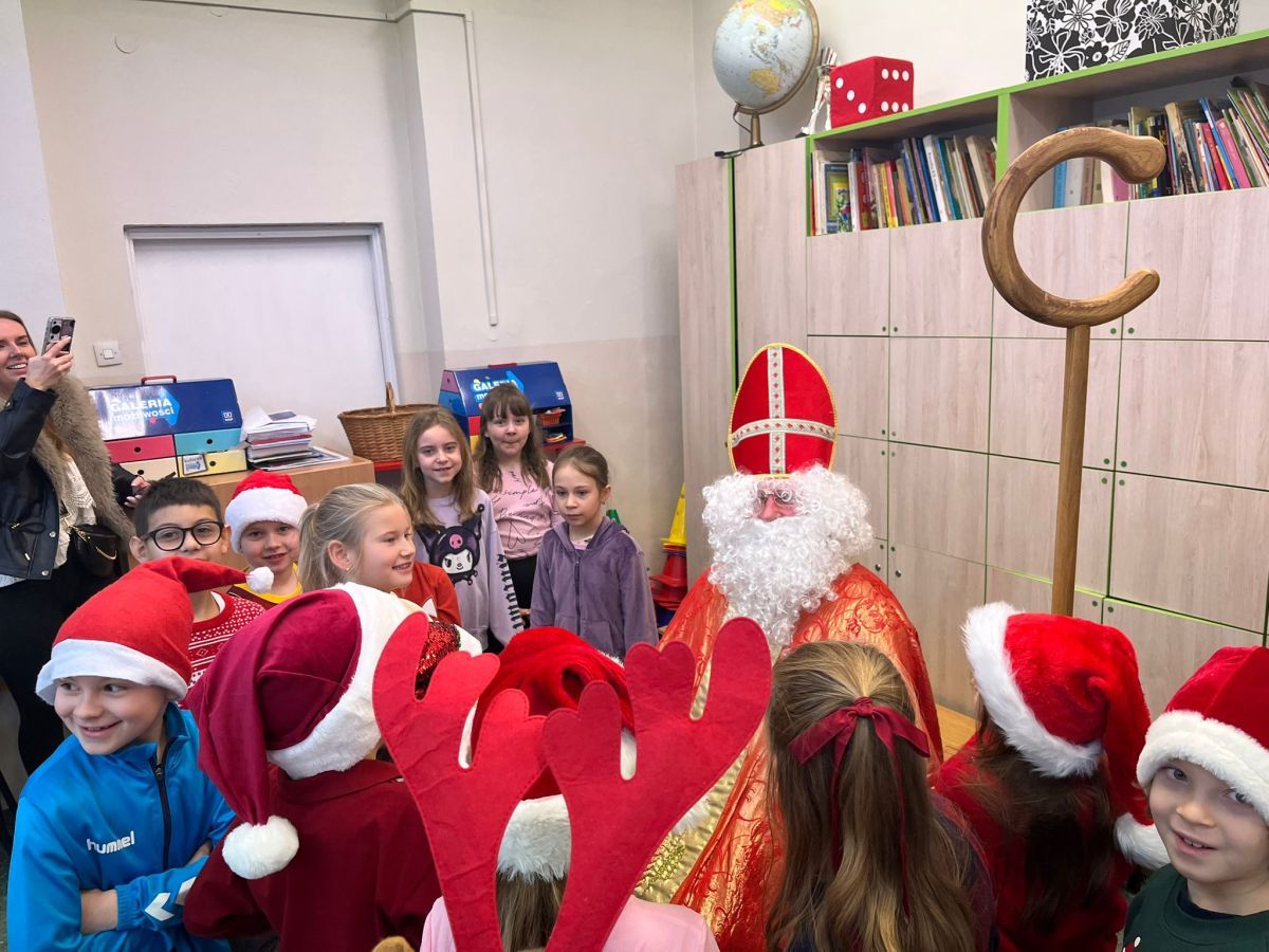 5 grudnia do szkoły przybył Święty Mikołaj. 🎅🏻 Odwiedził uczniów klas 2a i 2c. Dzieci zostały obdarowane upominkami. Na zakończenie wizyty wszyscy zrobili pamiątkowe zdjęcie.