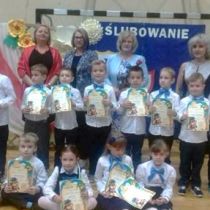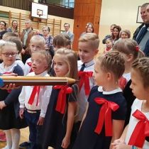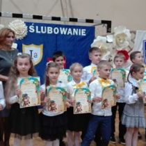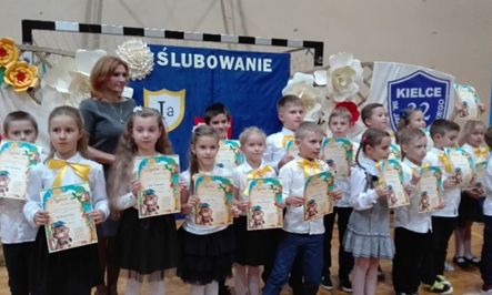 5 października 2017 r. w naszej szkole odbyło się Ślubowanie uczniów klas pierwszych. Uroczystość miała bardzo podniosły i radosny charakter. W tym szczególnym dniu pierwszoklasistów swoją obecnością wspierali rodzice oraz zaproszeni goście. Uczniowie trzech klas pierwszych przed pocztem sztandarowym złożyli uroczyste ślubowanie, zobowiązując się do tego, że będą dobrymi uczniami i Polakami. Chwilę później nastąpił najbardziej oczekiwany moment - pani dyrektor, Marzena Stempniak, dotykając ramion dzieci symbolicznym ołówkiem, przyjęła je do grona uczniów Szkoły Podstawowej nr 32 im. Janusza Kusocińskiego w Kielcach. Dzieci miały możliwość zaprezentowania swoich umiejętności wokalnych i recytatorskich w części artystycznej. Występ spotkał się z bardzo ciepłym przyjęciem. Artyści po każdym występie byli nagradzani gromkimi brawami. Na zakończenie pierwszakom zostały wręczone pamiątkowe dyplomy.