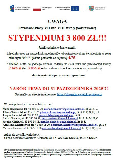 UWAGA uczniowie klasy VII lub VIII szkoły podstawowej STYPENDIUM 3 800 ZŁ!!!