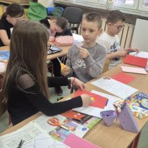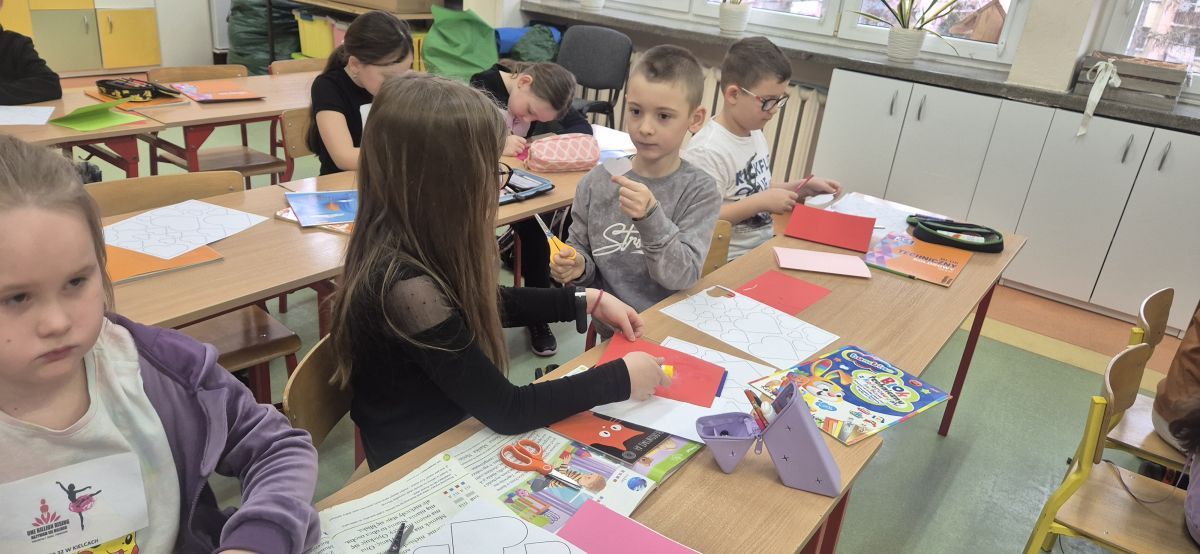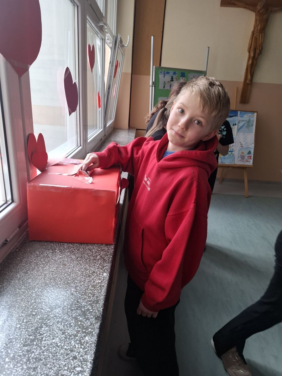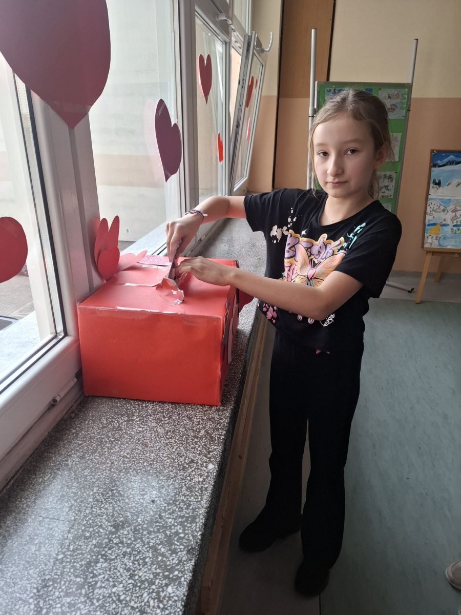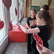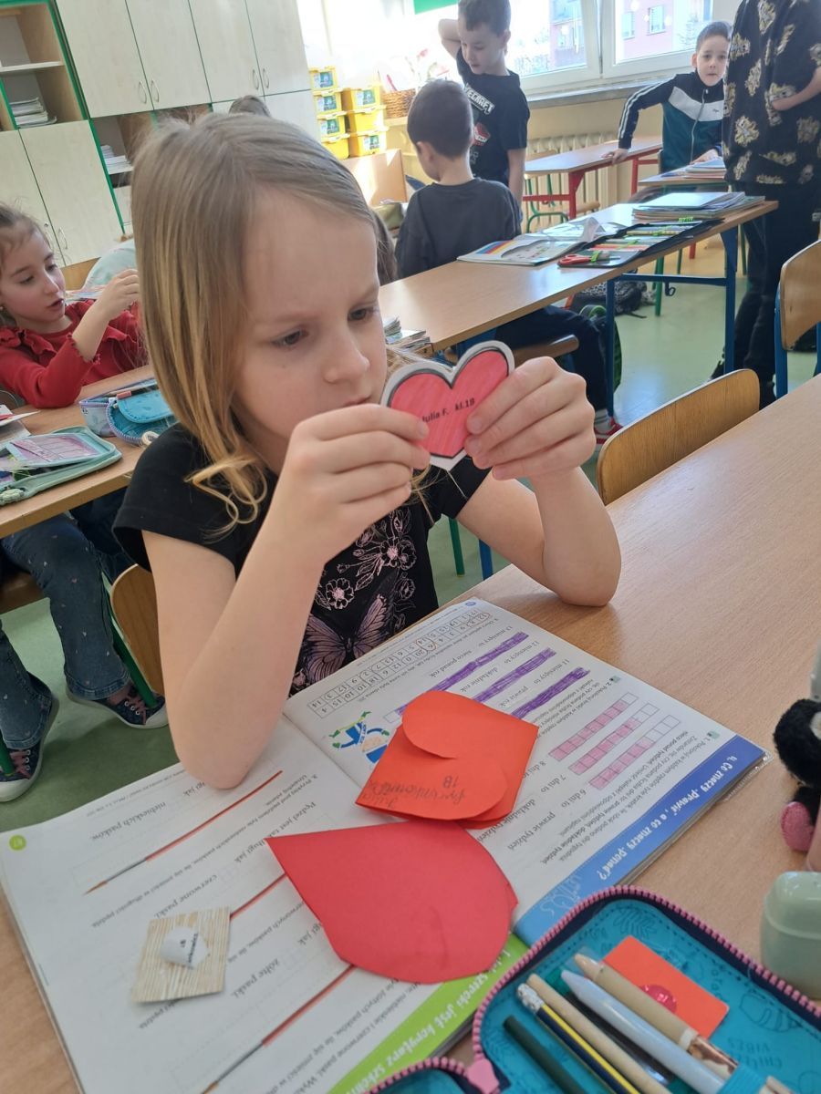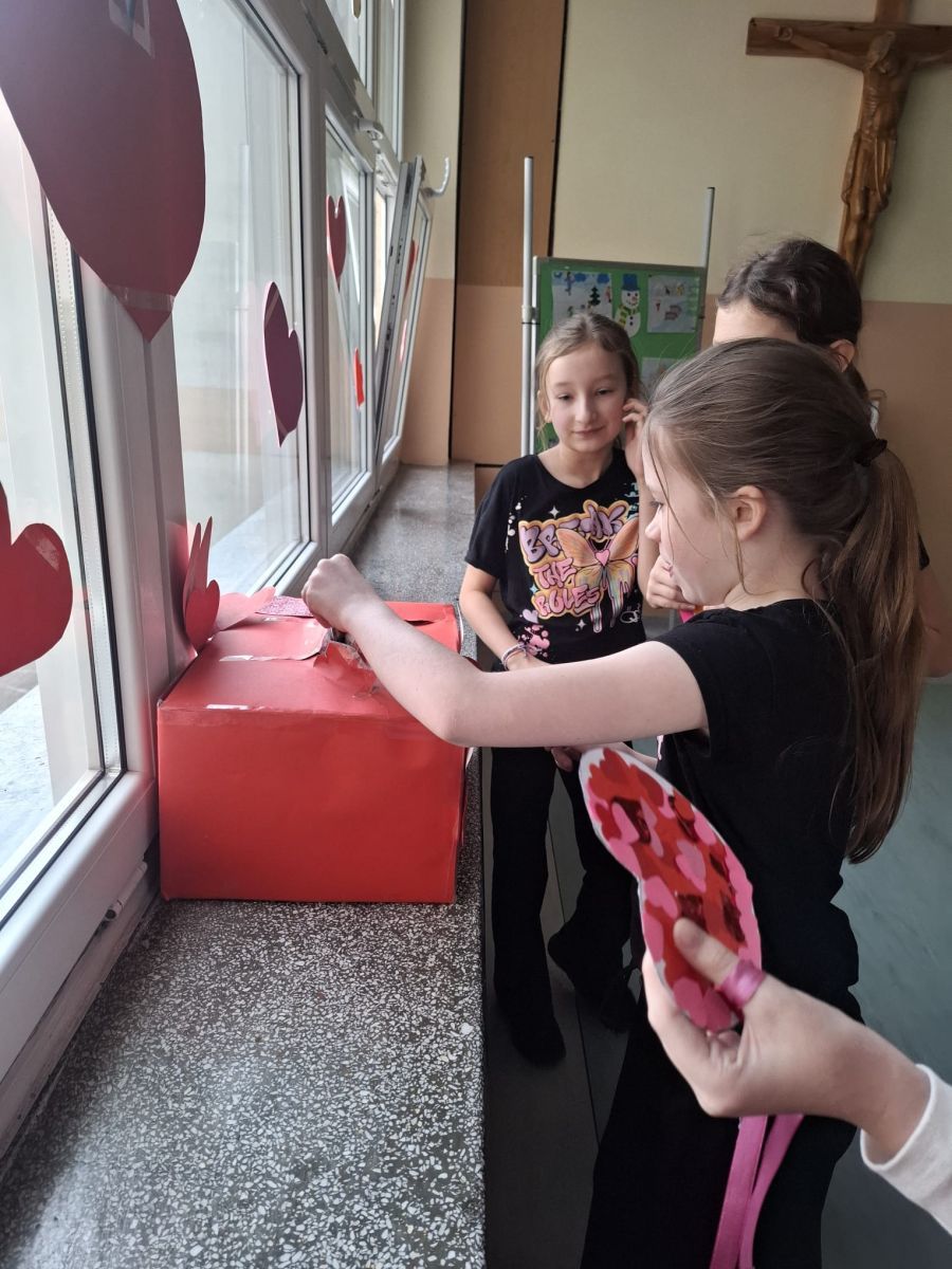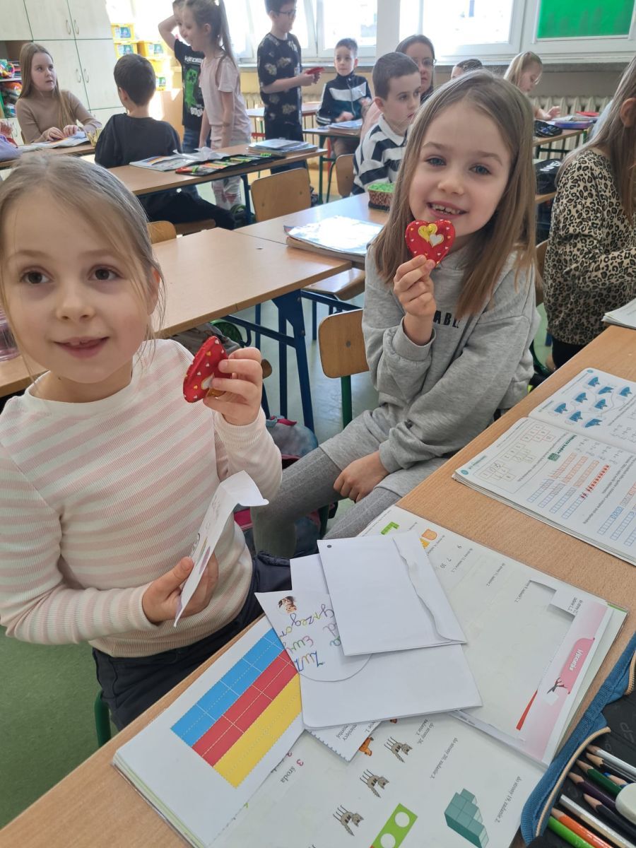 W piątek obchodzimy w szkole walentynki, czyli święto przyjaźni, sympatii i miłości . Niektórzy uczniowie z klas 1-3 wykonali kartki walentynkowe , które następnie podarowali najbliższym im osobom bezpośrednio lub poprzez szkolną pocztę walentynkową . Inni wykonali ich projekty na komputerze, a jeszcze inni świętowali w kinie.