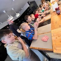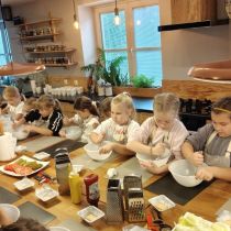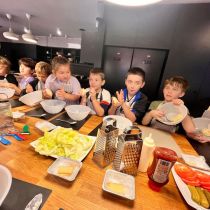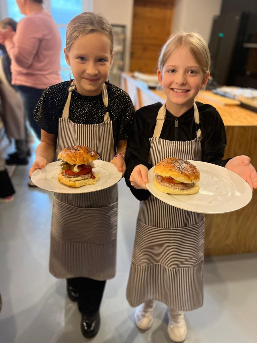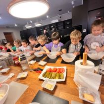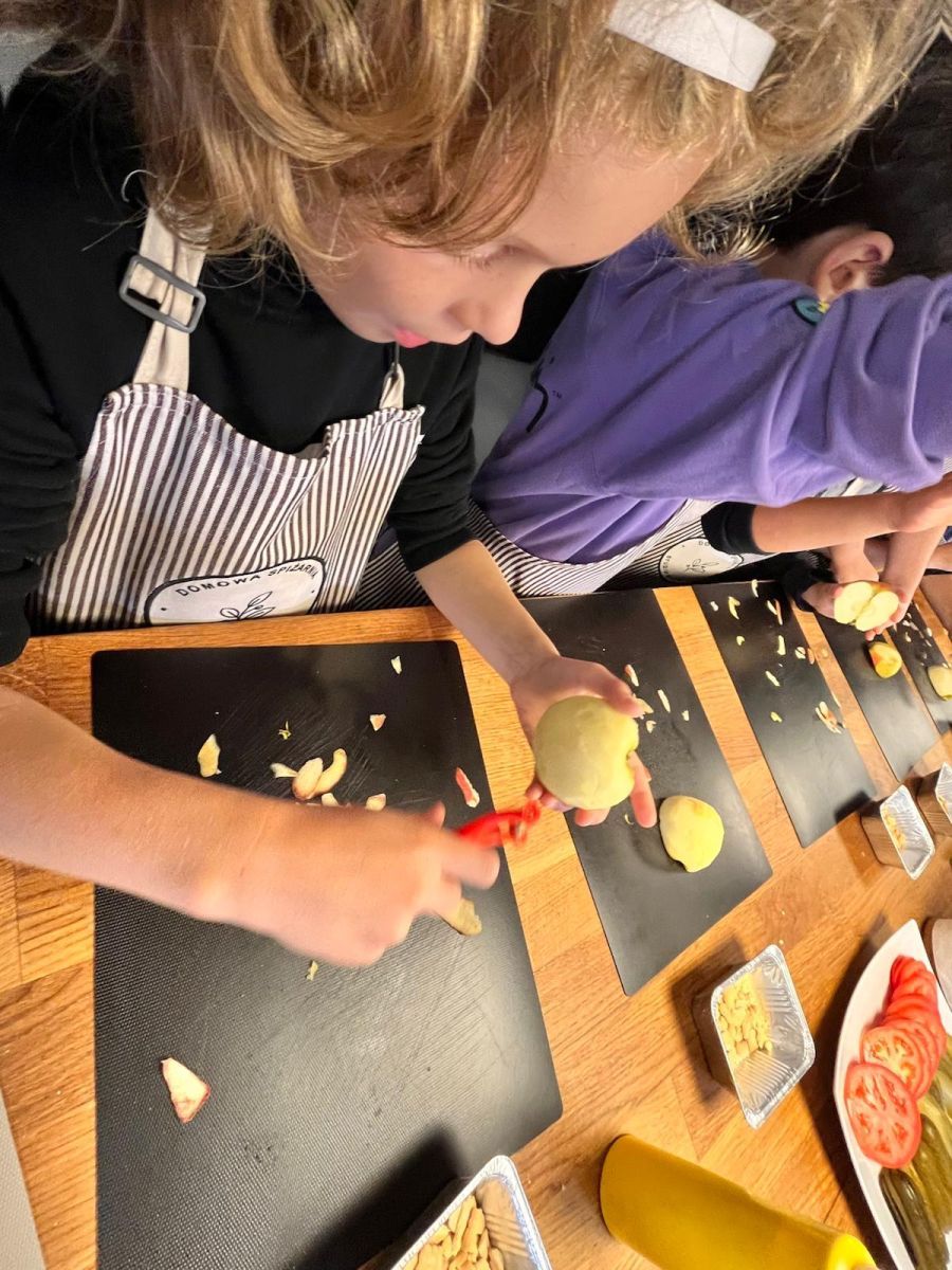 Uczniowie klas IIb i IId wzięli udział w warsztatach kulinarnych, podczas których mieli okazję wcielić się w prawdziwych kucharzy. Z zaangażowaniem i uśmiechem na twarzy samodzielnie przygotowywali pyszne burgery oraz aromatyczną szarlotkę.