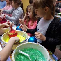 14 i 17 listopada br -  klasy  O a, I a, I c , II b wybrały się na wycieczkę do Fabryki Bombek ,,Decora"  w Miechowie. Celem wycieczki było poznanie procesu wytwarzania i ozdabiania bombek choinkowych. Po przybyciu na miejsce uczniami zajęli się pracownicy zakładu. Dzieci podzielone na dwie grupy uczestniczyły w warsztatach plastycznych i pięknymi brokatowymi farbami  malowały  bombki zgodnie z projektami wcześniej przygotowanymi i wykonanymi w klasie. Podczas  zwiedzania fabryki,  z wielkim zainteresowaniem obserwowały cały  proces tworzenia  tych ozdób choinkowych :   wydmuchiwanie, posrebrzanie - ,,kąpiel", suszenie, malowanie i pakowanie  . Mnóstwo radości sprawił dzieciom fakt, iż własnoręcznie wykonana bombka zawiśnie na ich domowej , bożonarodzeniowej  choince. Na  zakończenie wycieczki  uczniowie zakupili  w fabrycznym sklepiku  dowolnie wybrane ozdoby. Mieli okazję wykazać się samodzielnością w dokonywaniu własnego wyboru oraz umiejętnością liczenia pieniędzy. Wycieczka ta pozwoliła uświadomić uczniom   - ile   pracy, wysiłku, pomysłowości  i cierpliwości wymaga wyprodukowanie ozdób choinkowych, aby świąteczne drzewka  sprawiały im tyle radości.